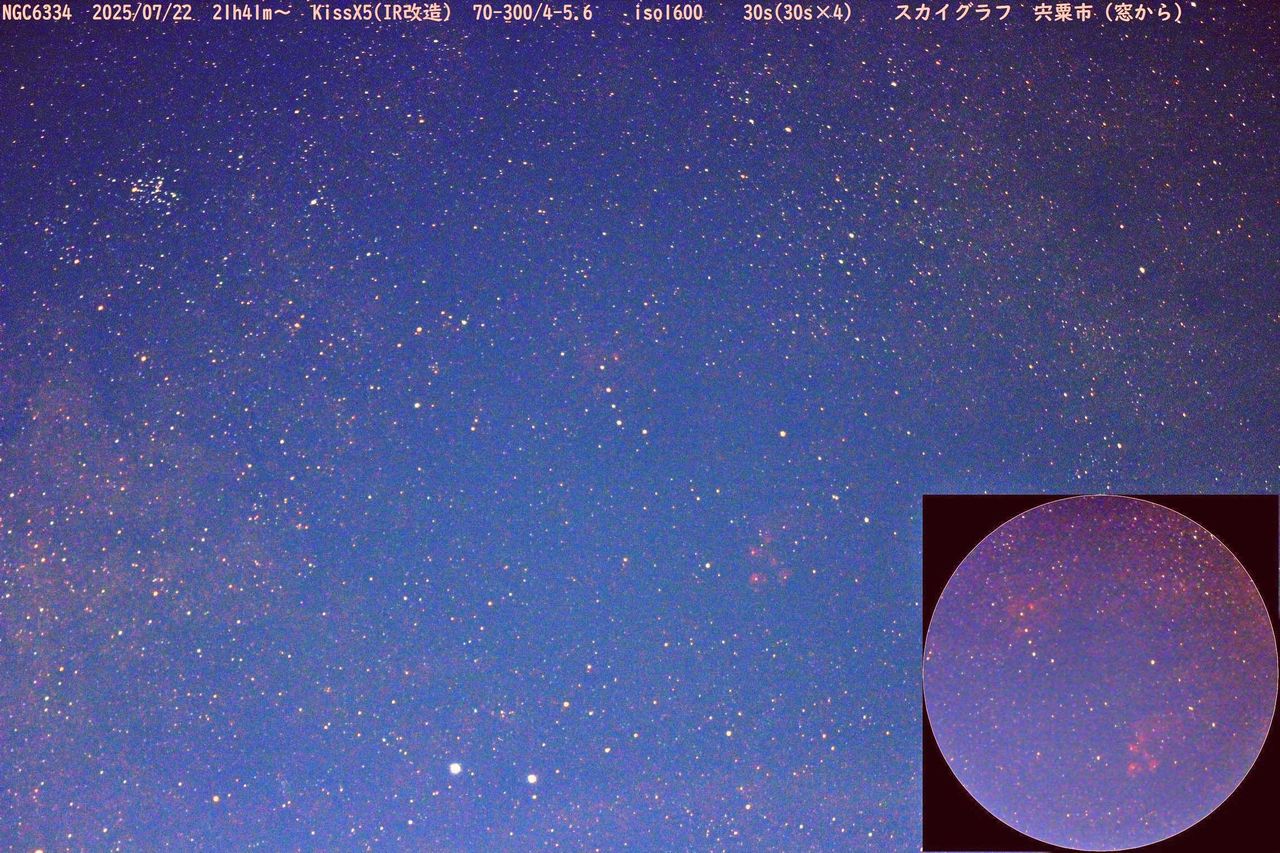| NGC6334(出目金星雲),NGC6357(彼岸花星雲) 自宅窓からフィルター無しでどの程度写るか試してみました |