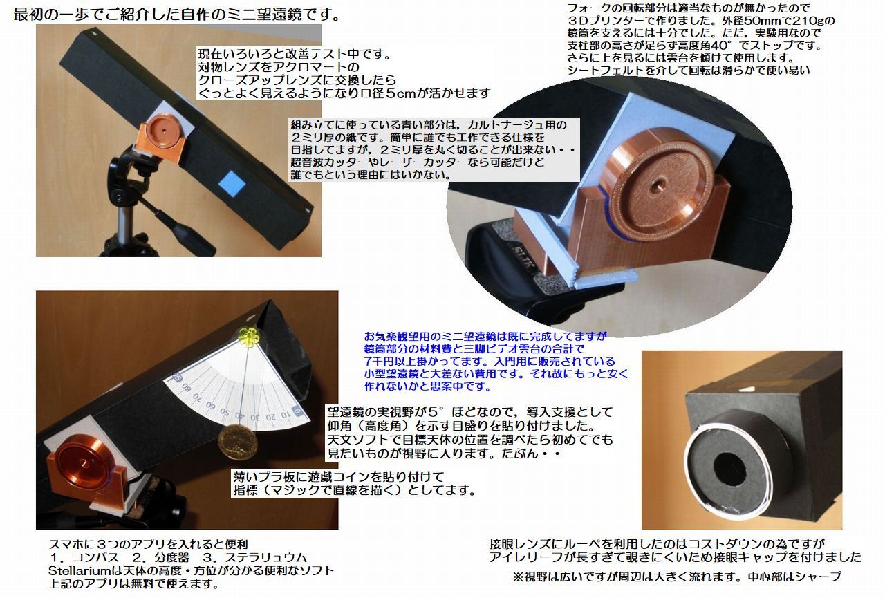 誰でも簡単に・安く作れて実用になるミニ望遠鏡を目指してカイゼン中